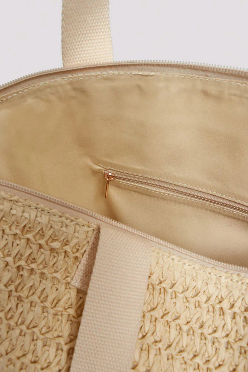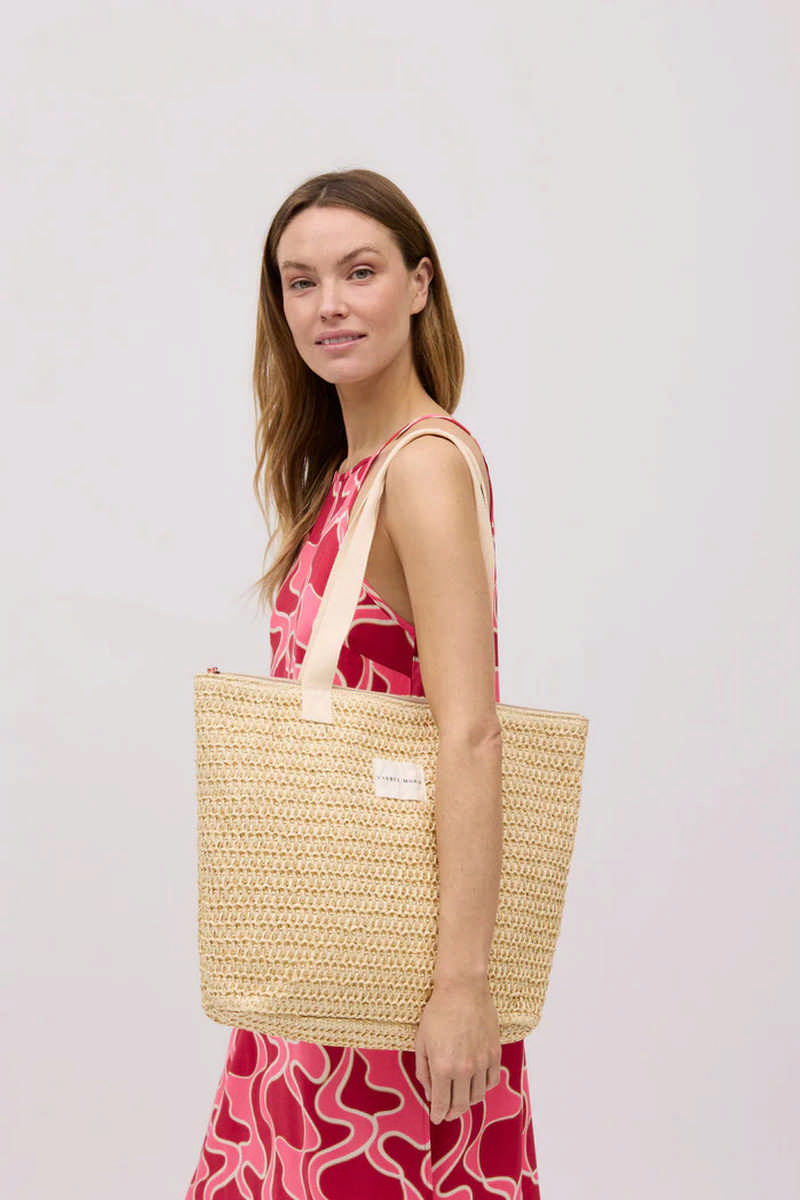 Сумка для пляжа от Ysabel Mora ILHA DE MEL 86207. Выполнена из бумаги. Сумка на молнии. Внутри карман на молнии. Размер сумки 46*12*35 см. Текстурировынный материал.
