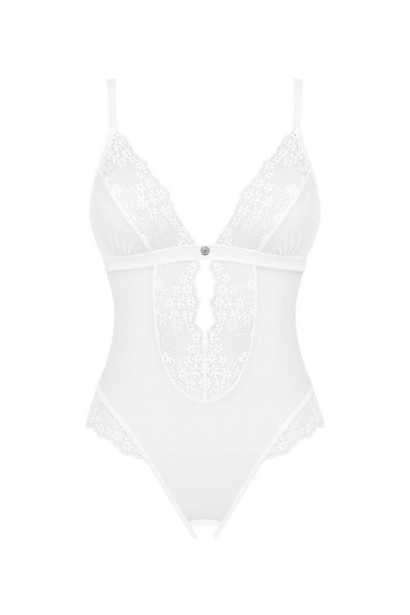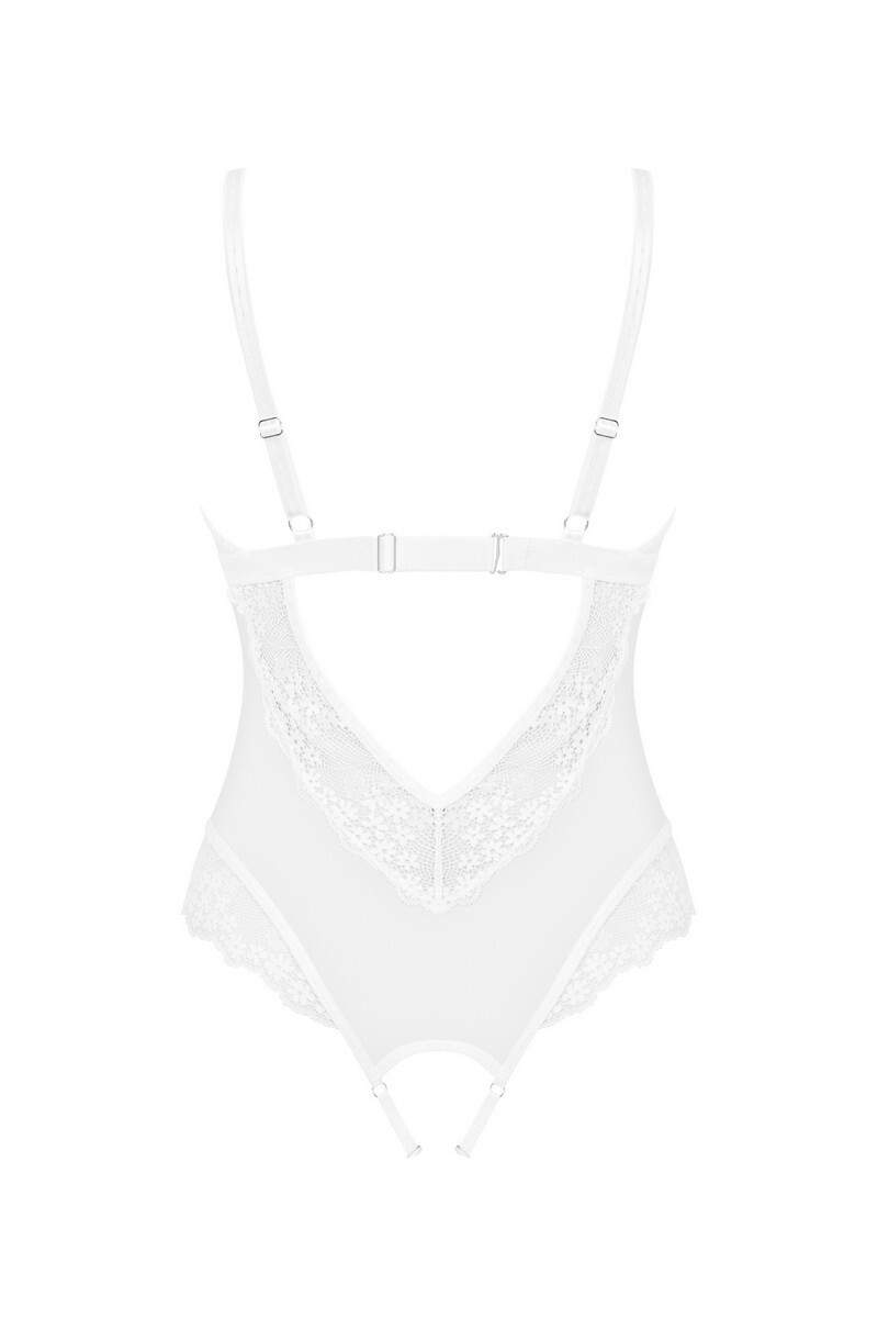 Если вы ищете исключительное нижнее белье для первой брачной ночи, вы находитесь в нужном месте. Красивое боди с открытой промежностью докажет свое неотразимое очарование и вашей второй половине. Это чувственное решение позволяет в полной мере насладиться страстью без компромиссов! Дополните свой райский образ пеньюаром и перчатками из той же коллекции, и вы почувствуете себя на седьмом небе от счастья! Блестящая подвеска – элегантный аксессуар. Регулируемые бретельки в области промежности и на спине – для комфорта и идеальной посадки. Роскошная деликатность тканей.