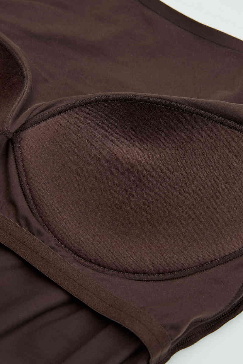 В оттенке темного шоколада боди Cleary приобретает исключительную интенсивность и благородство. Гладкая минималистичная форма заряжает силуэт, а идеально встроенные поролоновые градуированные чашки с легким пуш-ап собирают и приподнимают бюст, создавая эффект естественной формы. Встроенная передняя часть чувственно контрастирует с вырезом на спине, который тонко раскрывает тело, добавляя к целому изысканной легкости. Это модель, сочетающая в себе простоту и смелую элегантность, превосходную как в роли невидимой основы под одеждой, так и в самостоятельном элементе стиля, полном женской силы. Нежный подклад чашки из 100% полиэстера. Хлопковая ластовица.