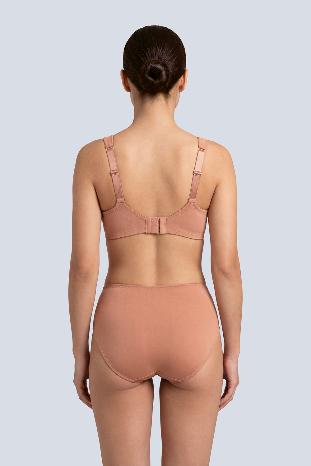 Бюстгальтер с мягкой чашкой на косточках, выполнен из эластичной микрофибры. Верхняя деталь чашки выполнена из эластичной сетки. Внутренняя поверхность чашек 100% хлопок. Бретели широкие, несъёмные, регулируемые по длине.