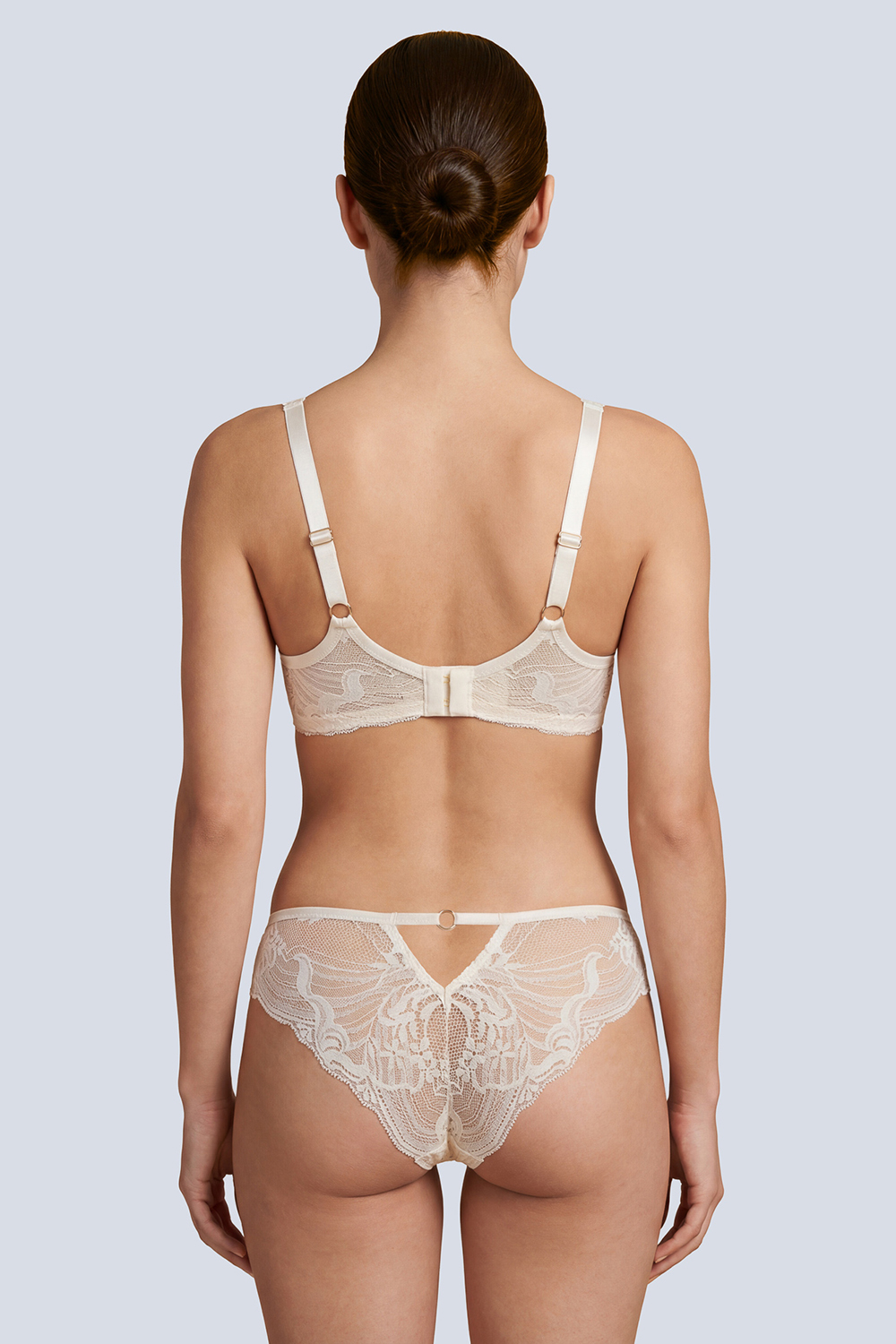 Романтичный бюстгальтер-бралетт Pure Romantic, с мягкой чашкой на косточках, с боковой поддержкой. Внутри чашечки продублированы нежной сеточкой, внешняя сторона чашек покрыта красивым кружевом. Бретели несъёмные, регулируемые по длине. На спинке регулируемая застежка. Между чашек украшение в виде красивой подвески.