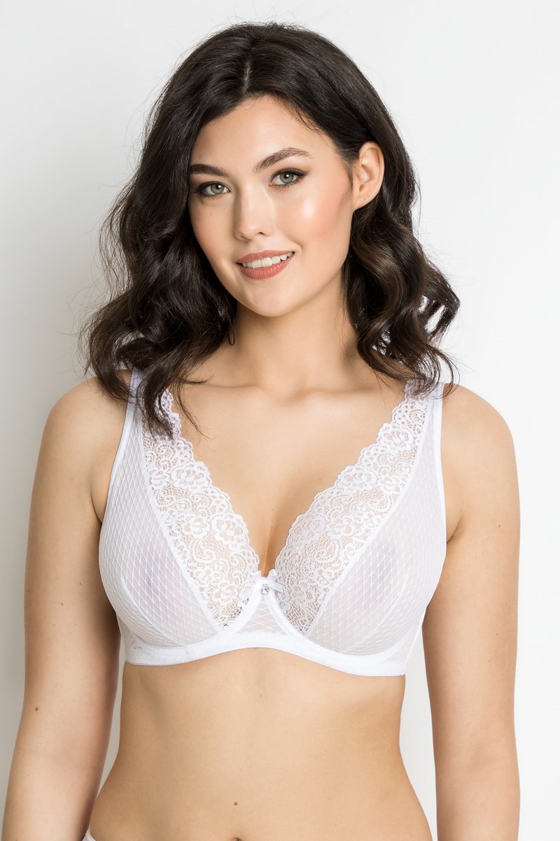 Бюст типа бралет DREAM от европейского производителя Subtille. Мягкая чашка на каркасах в форме бралетт. Модель выполнена из нежной сеточки с вышивкой в ромб, а по верху дополнена эластичным полотном. Изделие с несъемными, регулируемыми по длине бретелями. Спинка полностью из микрофибры, есть боковые косточки.