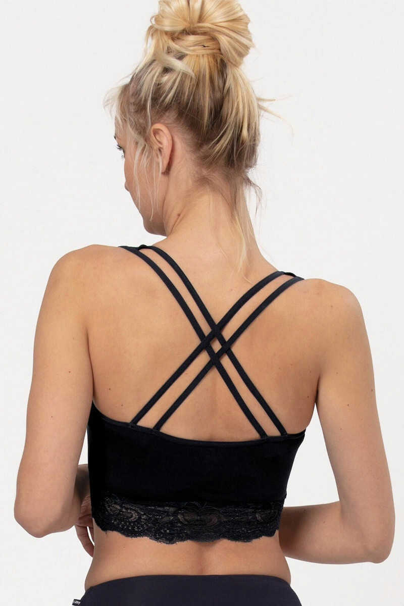 Топ женский из мягкого бамбуковго трикотажам с кружевной отделкой. Топ без косточек, съемный тонкий поролон. Сзади крест-накрест полосы. Бретели без регулировки длины.
