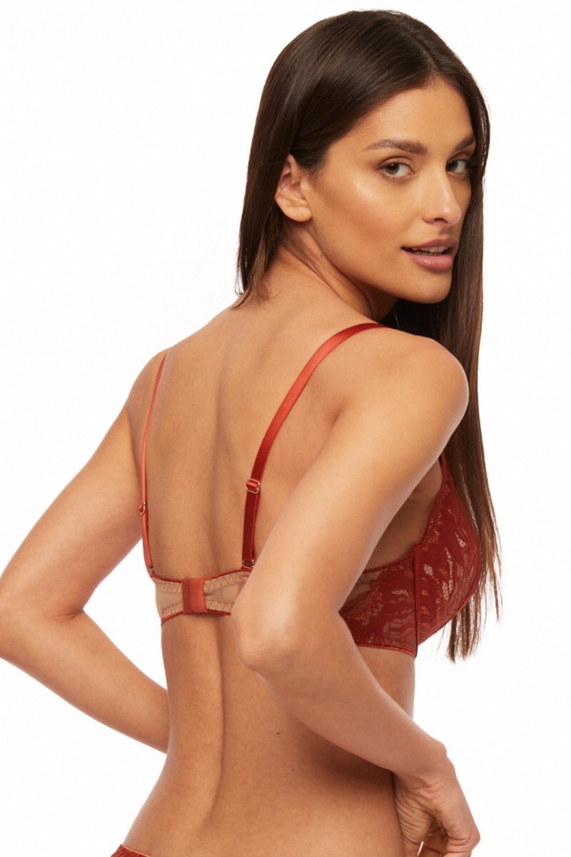 Бюст 860-SC от европейского производителя Kinga. Элегантная модель в медном цвете с добавлением золотистой нитки. Мягкая чашка на кости, отделанная кружевом. Спинка из микротюля. Несъемные бретели, регулируемые по длине.