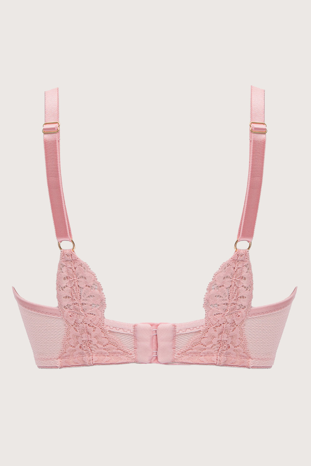 Роскошный бюстгальтер Powder Whisper на косточках сочного розового цвета. Чашки на тонком поролоне с пуш-ап вкладышами. Внутренняя сторона чашки проложена хлопковым трикотажем, наружная покрыта ярким цветочным кружевом. Бретельки регулируются по длине. На спине застежка на крючки-петли. Между чашек красивое украшение в виде кристалла. Чашки поддерживают и приподнимают бюст, сохраняя при этом его естественную форму.