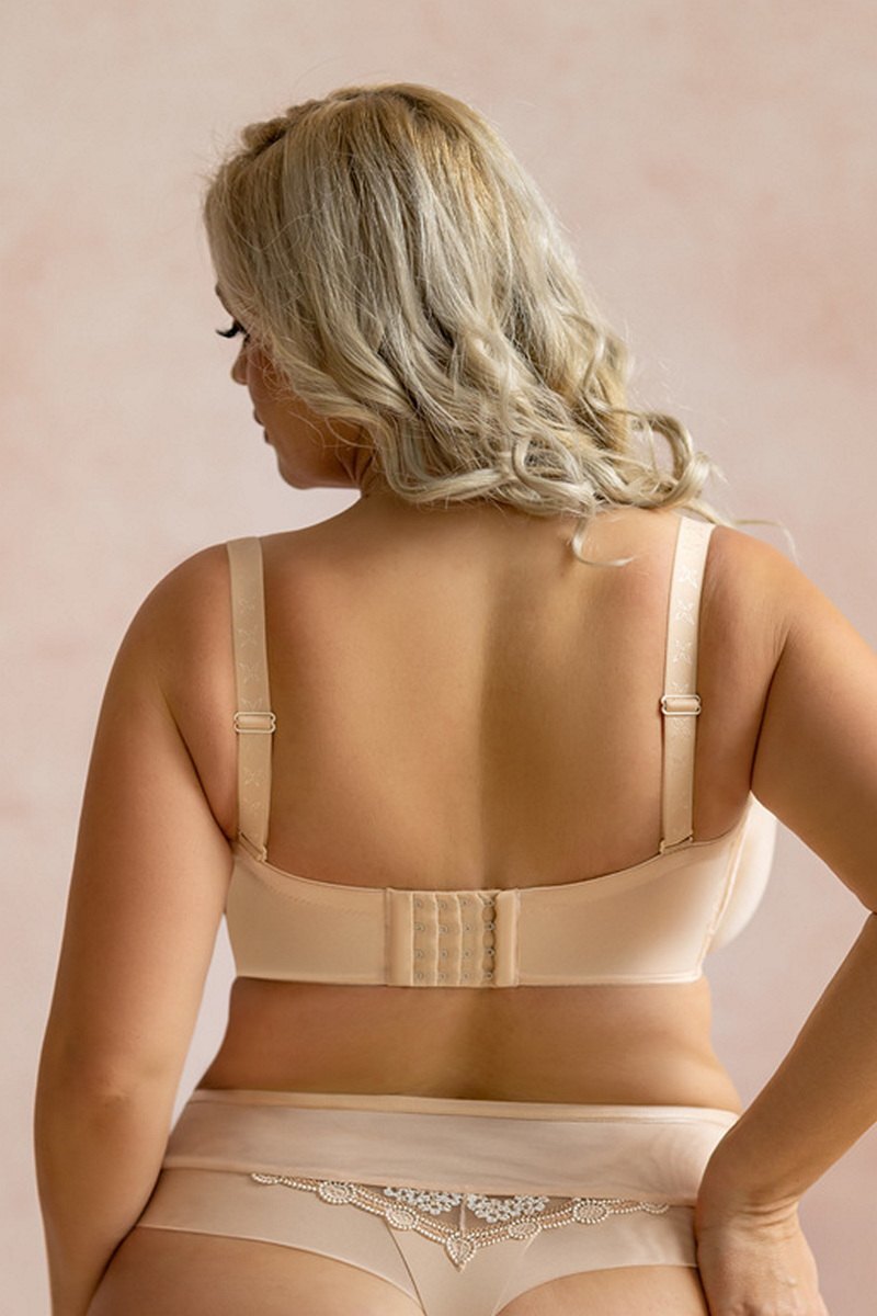 Бюстгальтер FORTUNA COMFORT от европейского производителя Kris Line. Гладкая чашка из тонкого поролона на кости, на стыке бюст декорирован бантом и ювелирным украшением. Несъемные регулируемые по длине бретели.