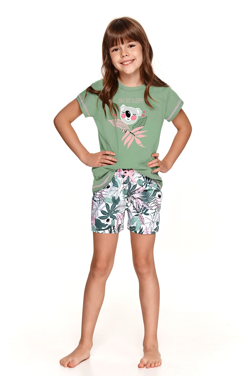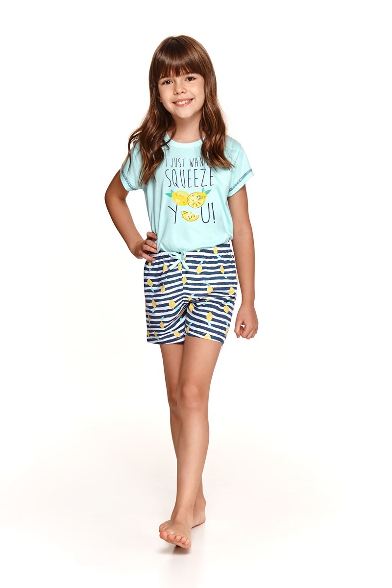 Детская пижама для девочек HANIA от европейского производителя Taro. Футболка с коротким рукавом и забавным нагрудным принтом. Узорные короткие шорты на удобной мягкой резинке. Пижама в трёх расцветках. Состав: В расцветке (1) Зеленый: Футболка 93% хлопок 7% эластан, Шорты 100% хлопок В расцветке (2) Желтый + синий: 100% хлопок, В расцветке (3) Бирюзовый + синий: 100% хлопок. Бирюзовая расцветка идеально подходит для FAMILY LOOK к женской пижаме, арт. 2495 LEMON.