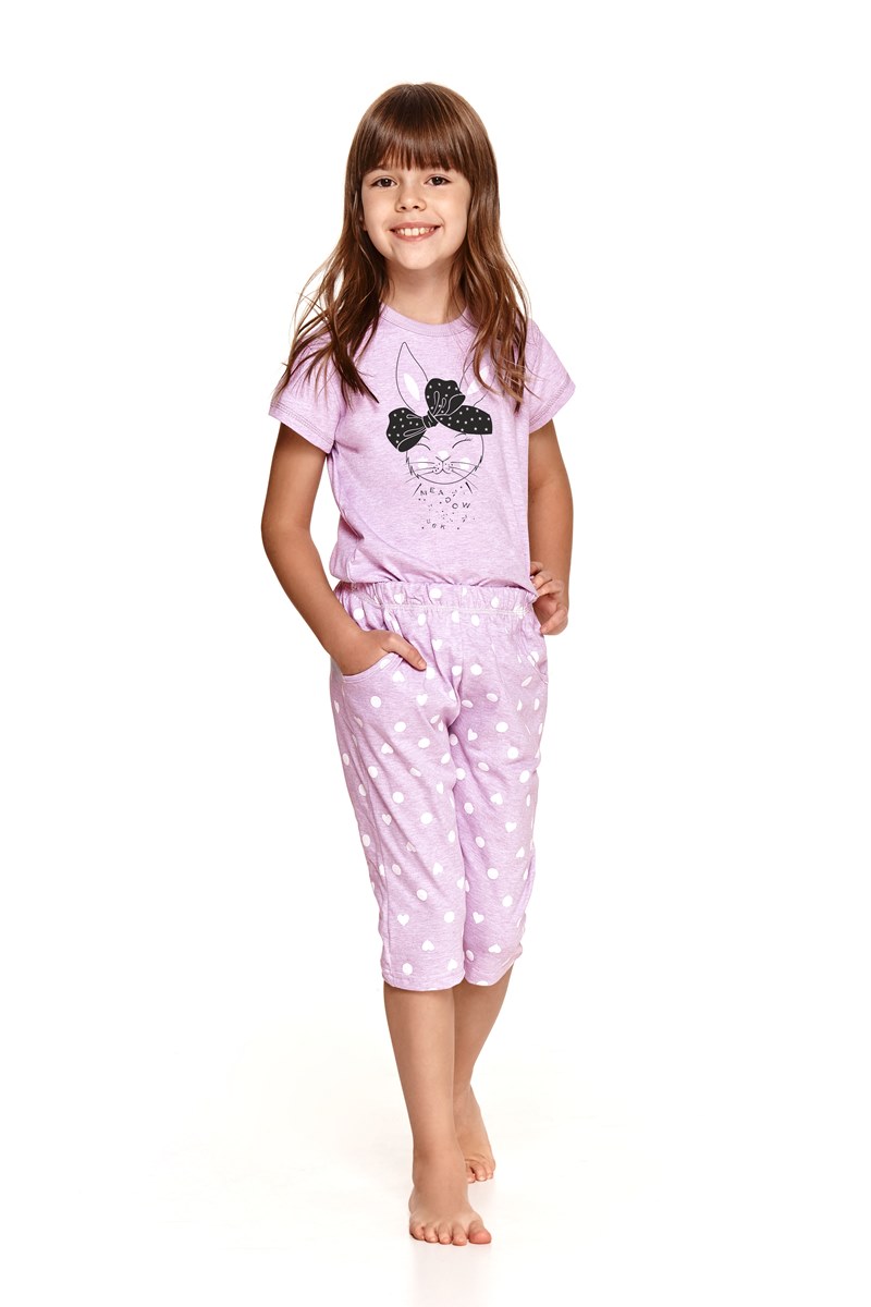 Детская пижама для девочек BEKI от европейского производителя Taro. Футболка с коротким рукавом и забавным нагрудным принтом. Узорные капри, длиной ниже колена, на мягкой удобной резинке. Пижама в двух расцветках. Состав: В расцветке (1) св. Серый + Роза Антик: Футболка 95% хлопок + 5% полиэстер, Капри 100% хлопок, В расцветке (2) Лиловый: 92% хлопок 8% полиэстер.