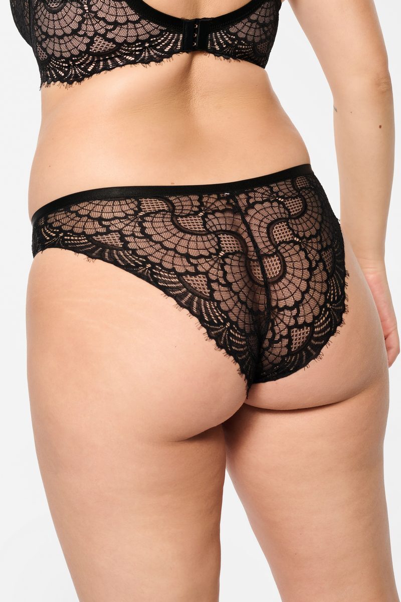 Кружевные трусики бразильяно средней посадки. Кружево: 87% полиамид, 13% эластан Микротюль: 90% полиамид, 10% эластан