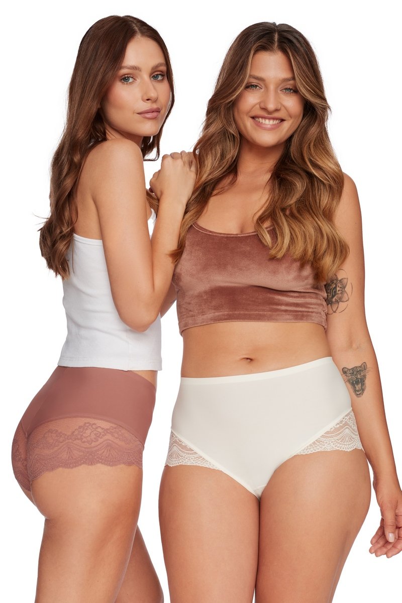 Трусы слипы высокой посадки. Выполнены из гладкой микрофибры и кружева. 2 шт. в упаковке.