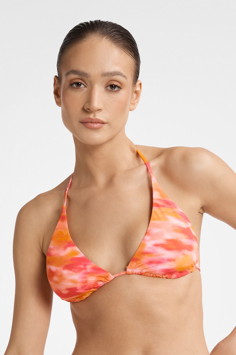 Бюст купальный треугольной формы со съемным тонким поролоном. Бретели завязываются на спине и через шею. К бюсту подходят купальные трусы арт. 40699. Подклад чашек 100% полиэстер.