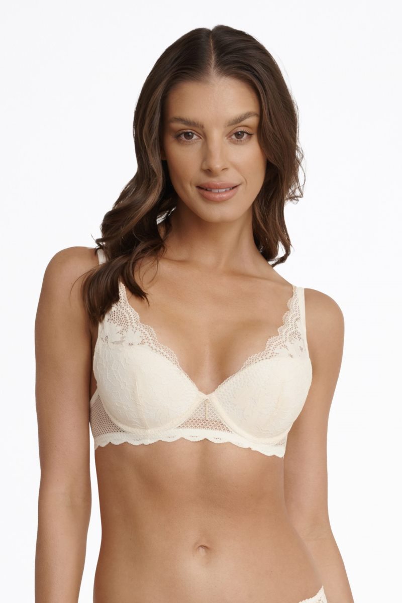 Кружевной бюстгальтер ILONA на базе Soho. Чашка на кости со съемным пуш-ап. Внутренняя поверхность чашек хлопковая. Несъемные ругулируемые бретели. Состав: Кружево: 90% полиамид,10% эластан Подклад чашки: 100% хлопок