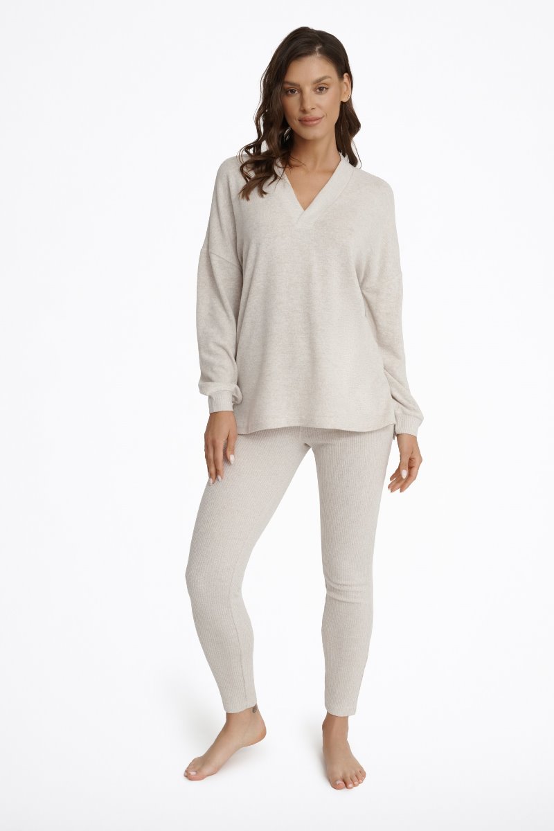Комплект женский со штанами. Кофта свободного кроя, рукава с манжетами, вырез v-образный.