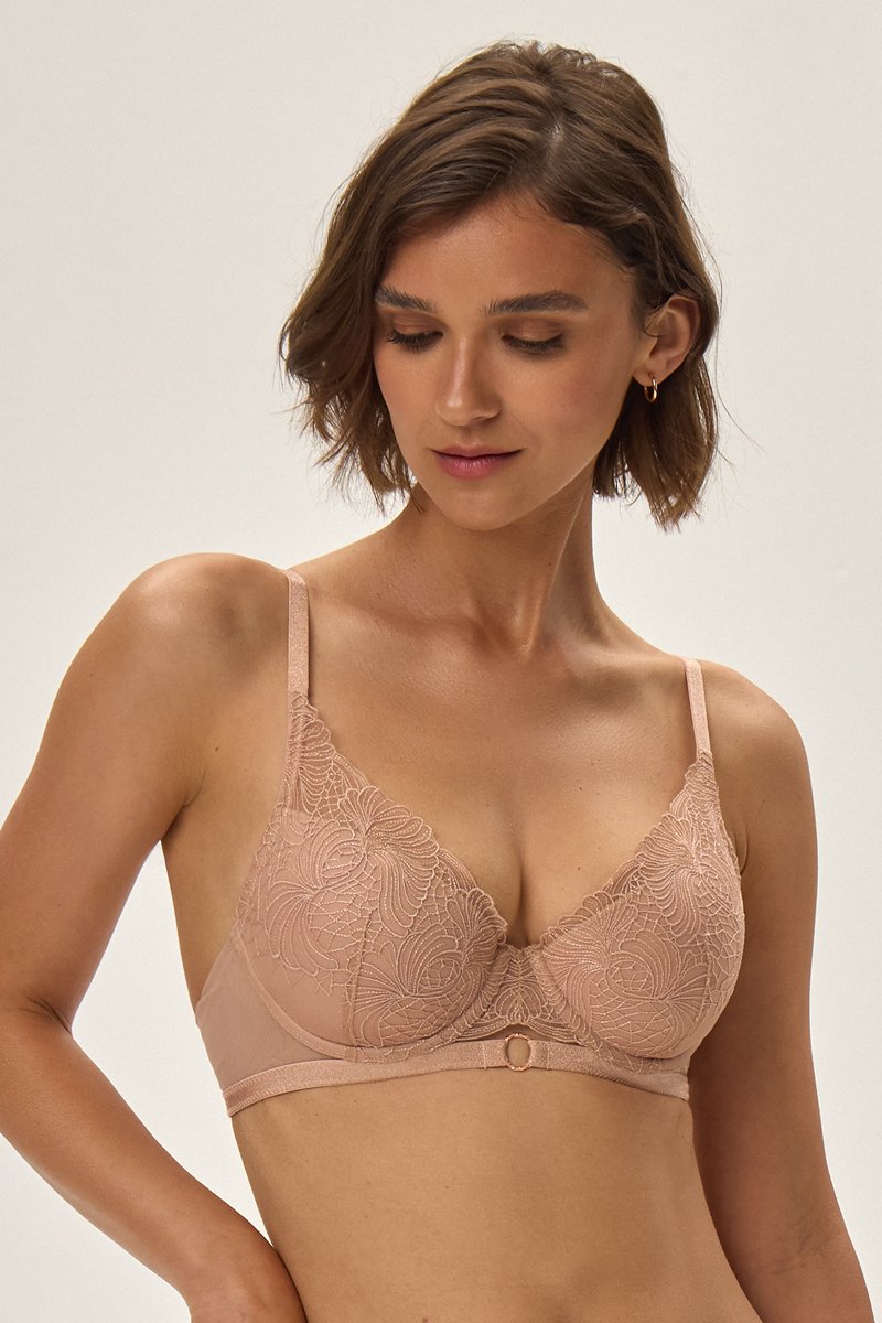 Бюстгальтер 41802 OMBRE. Чашка на кости со съемным пуш-ап. Изделие на базе Kassidy. Несъемные регулируемые бретели. Конструкция отлично собирает и удерживает грудь. Внутренняя поверхность чашек хлопковая. Состав: Основная ткань - 78% полиэстер, 22% полиамид. Сетка - 89% полиамид, 11% эластан. Эластичные блестящие детали - 86% полиамид, 14% эластан Подклад чашки - 100% хлопок.