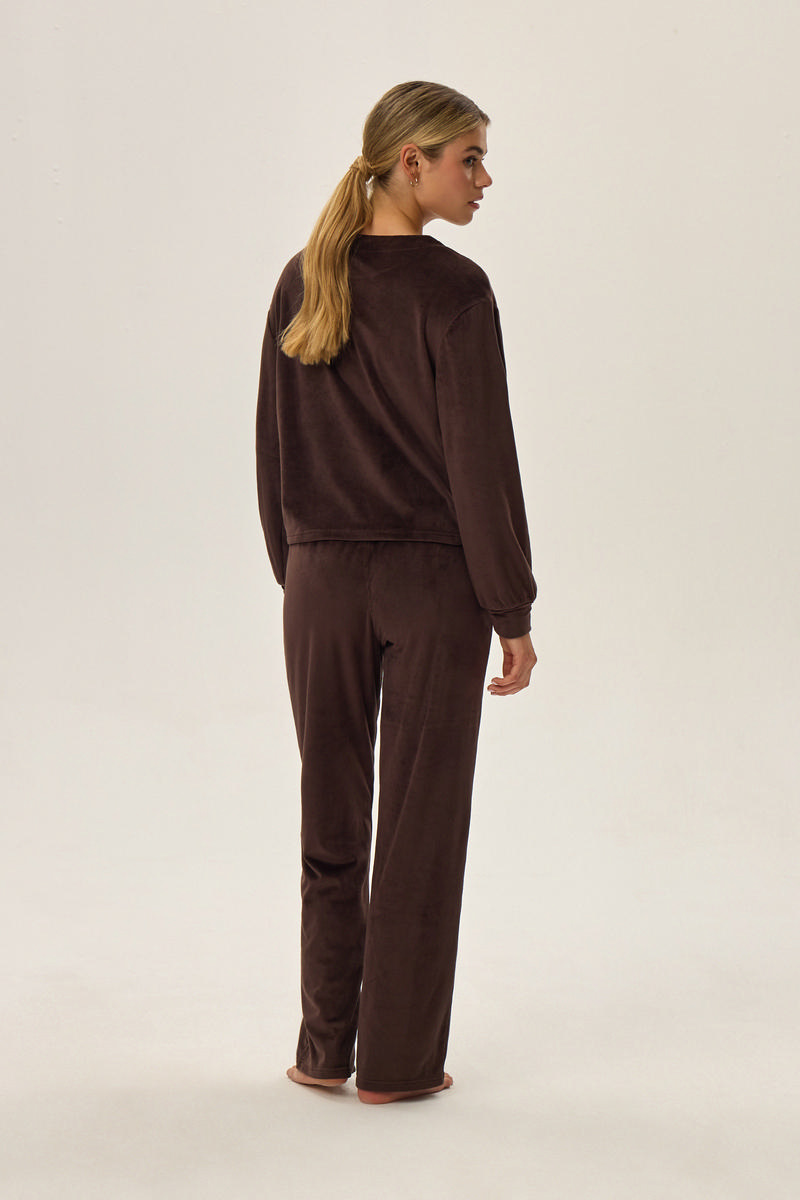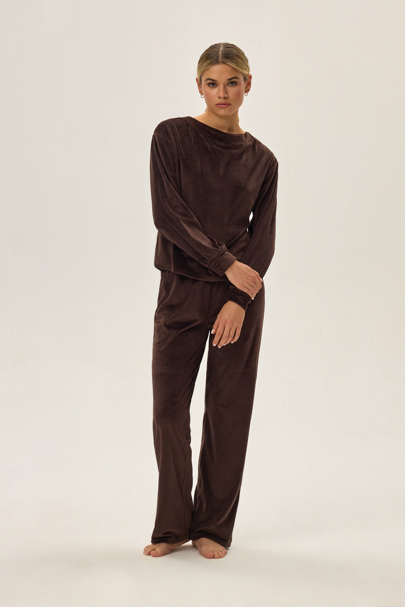 Мягкий комплект 42095 JADE. Брюки свободного кроя,кофта с манжетами. Велюровый комплект имеет вид, схожий с вельветовым. Стильно, удобно и молодежно!