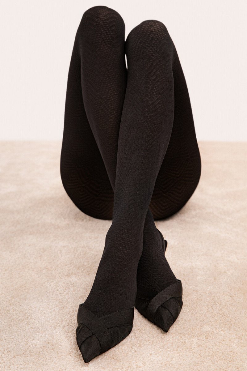 Узорчатые колготки привлекут внимание. Каскады тонких ромбов объединяются, образуя визуально легкую сеть пересекающихся линий и углов. Колготки безупречного качества, трикотаж которых мягкий и гладкий на ощупь, обеспечивающий максимальный комфорт в течение всего дня.