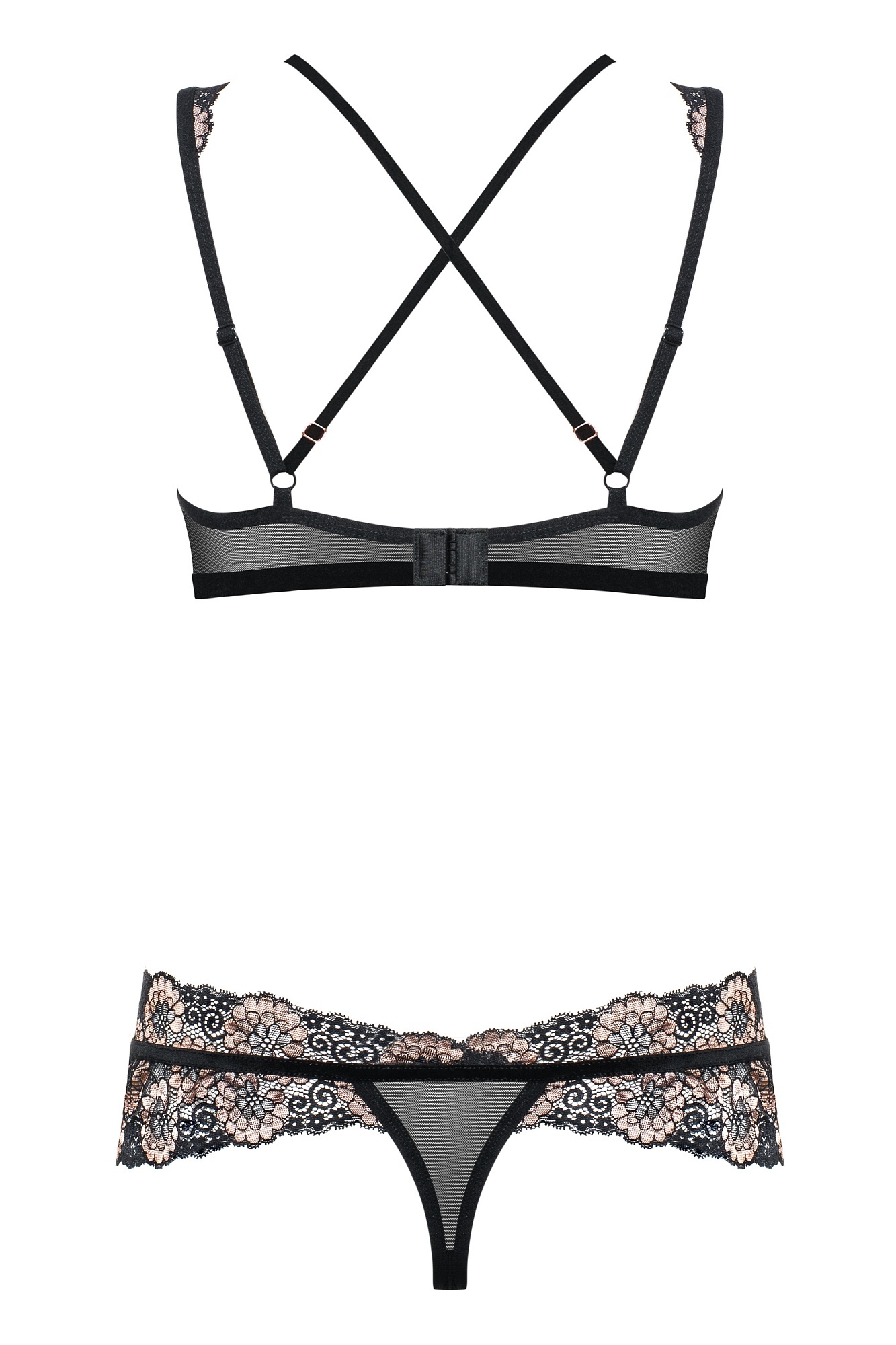 Соблазнительный комплект 873 SEA-1 от европейского производителя Obsessive. Сексуальный бюстгальтер с открытым декольте декорирован ажурным кружевом и соединенными между собой тонкими элементами. Спина украшена множеством регулируемых бретелей. В комплекте стринги. Съемные бретели между бюстом и стрингами - неповторимое украшение, добавляющее много сексуальной привлекательности!
