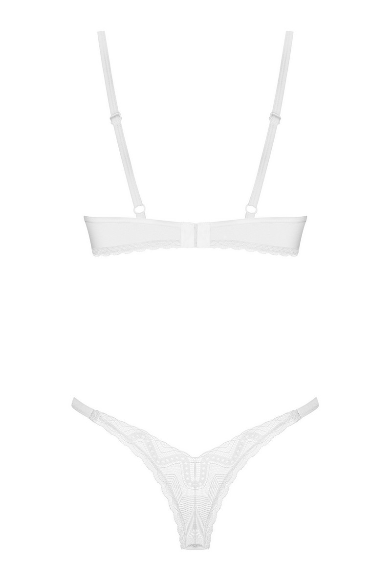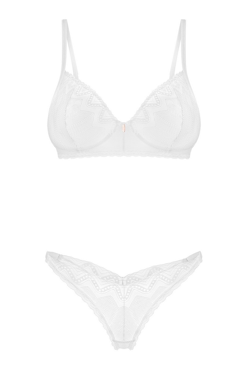 Способен ли минимализм разжечь страсть? Этот белый комплект от Alissium отвечает решительным "да"! Традиционный стиль нижнего белья сочетается с интригующим геометрическим мотивом, пробуждающим воображение и очарование. Бюстгальтер и стринги, изящно подчеркивающие ваши изгибы, несомненно, произведут неизгладимое впечатление не только на вас, но и на любого, кому посчастливится их увидеть! Дайте волю своим фантазиям, раскрыв чувственный потенциал этого очаровательного комплекта. Чашки на косточках, многоступенчатая застежка, регулируемые бретельки. Отделка розовым золотом. Этот комплект белого кружевного белья плавно переходит от дневной элегантности к интимному вечернему очарованию и идеально подходит как для рабочих будней, так и для романтических свиданий. Разработан в ЕС. Не содержит никеля.