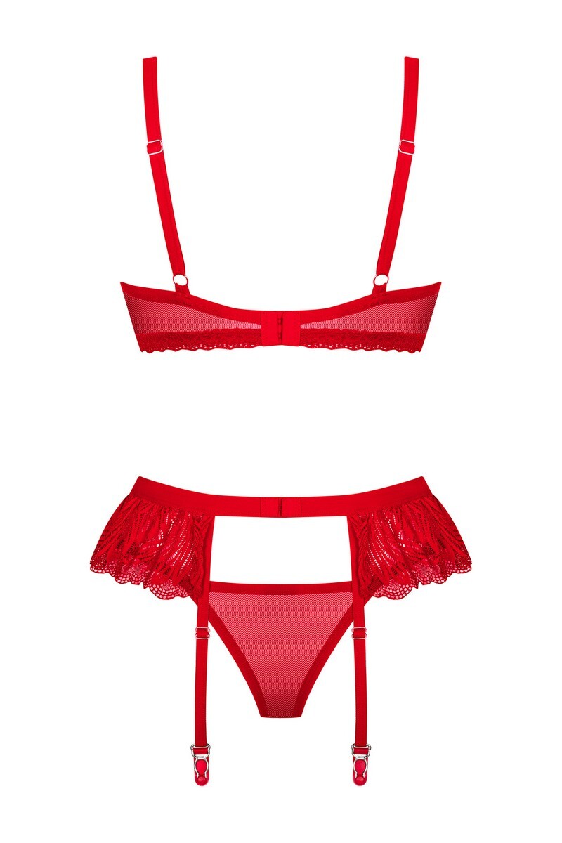 Красный комплект Chilisa, состоящий из пояса для подвязок, стрингов и бюстгальтера, многоступенчатое крепление на бюсте и регулируемые бретельки – обеспечивают идеальную посадку. Маленькая подвеска в форме сердца - аксессуар, украшенный цирконами. Чулки не входят в комплект – дополните свой наряд и наденьте их.