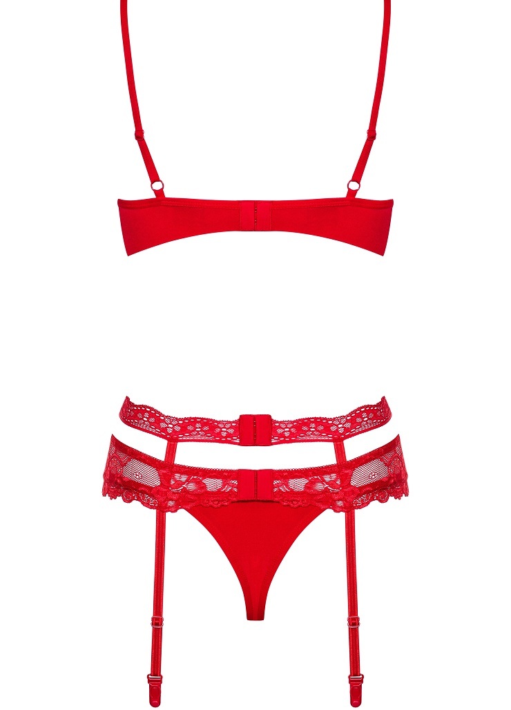 Комплект из трех предметов. Бюст бра, трусики-стринги и пояс под чулки.
