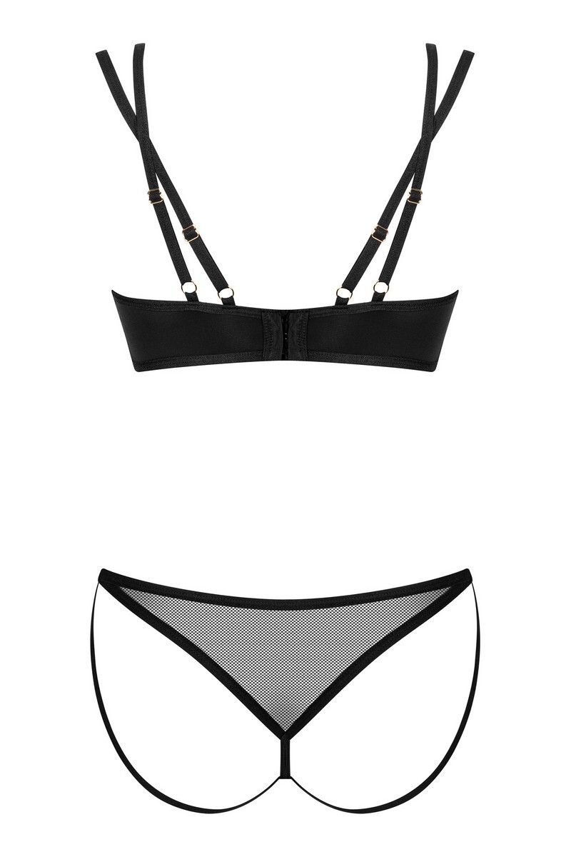 Хотите удивить свою вторую половину минималистичным бельем, предлагающим соблазнительные решения? Вы будете светиться от удовольствия и создадите незабываемый дуэт с комплектом Nesari! Со вкусом подобранные ткани, сексуальные бретельки и невероятная гладкая мягкость идеально облегают ваше тело, подчеркнут все достоинства и удивят вас высочайшим комфортом. Насладитесь моментами близости и испытайте неповторимое удовольствие. Комплект Nesari черного цвета состоит из бюстгальтера и стрингов. Регулируемые бретельки и многоступенчатое крепление создают идеальную посадку. Золотая подвеска дополняет образ.