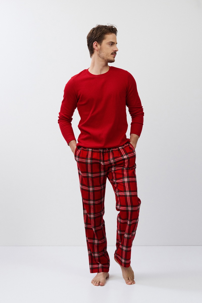 Пижама мужская со штанами BENSON для вашего ночного комфорта. Верх с длинными рукавами, круглым вырезом горловины. Штаны длинные, прямого кроя, с эластичным поясом с завязкой, с боковыми и задним карманами. Расслабьтесь с максимальным комфортом и стилем в пижаме BENSON. Состав: верх 62% хлопок, 33% полиэстер, 5% эластан; низ 100% хлопок.