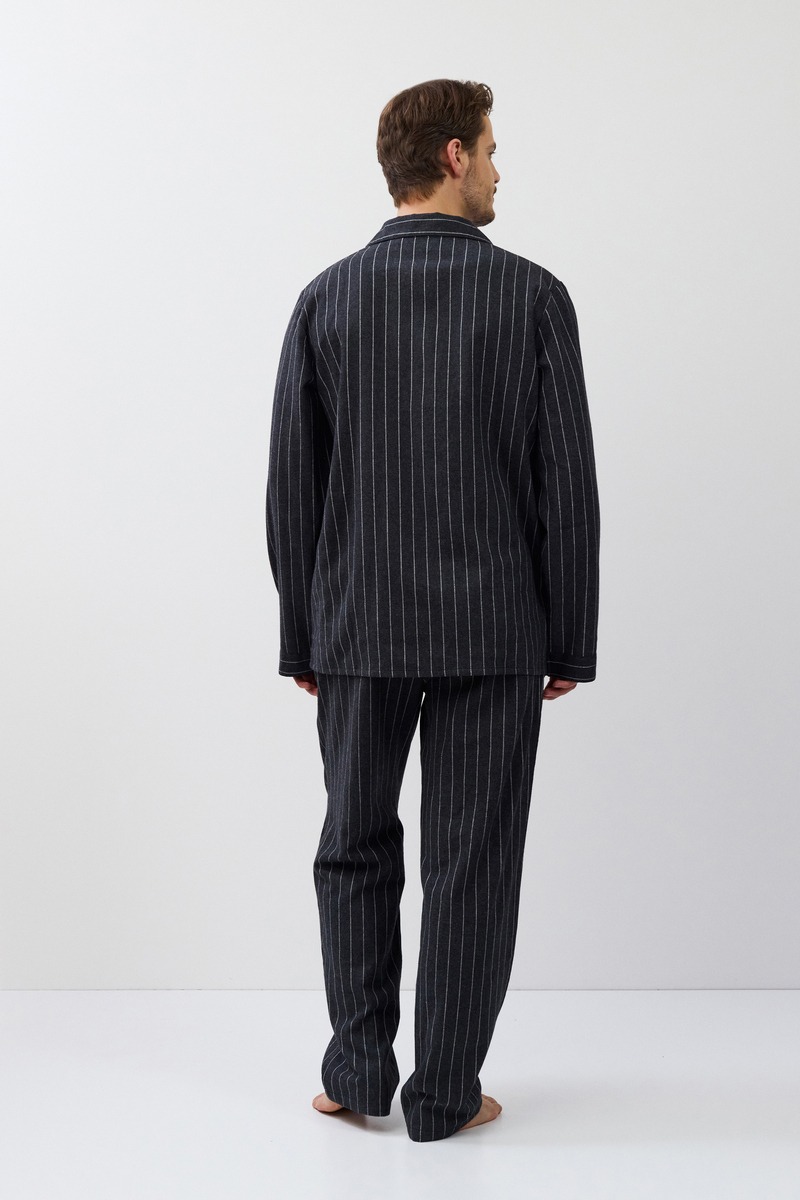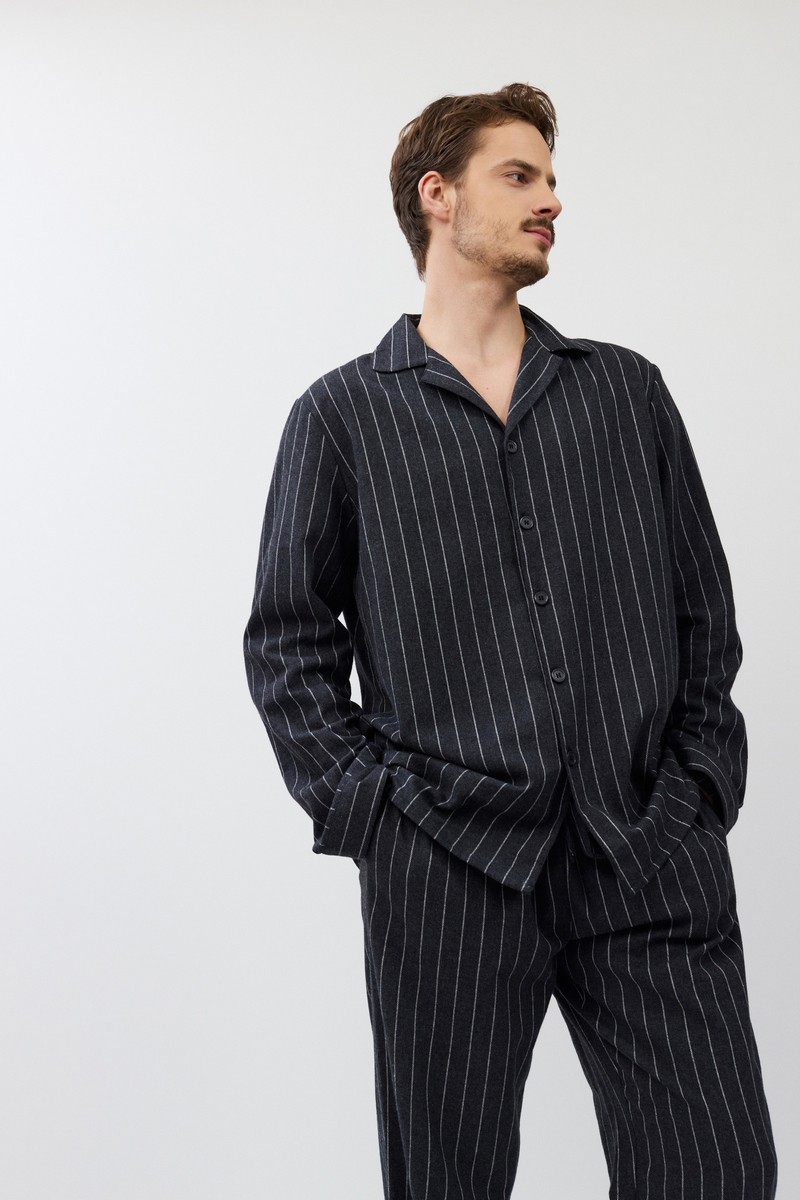 Пижама мужская со штанами CALEB для вашего ночного комфорта. Пижама выполнена из хлопковой фланели. Рубашка на пуговицах, с длинными рукавами, отложным воротником. Штаны длинные, свободной формы, с эластичным поясом с завязкой и боковыми карманами. Расслабьтесь с максимальным комфортом и стилем в пижаме CALEB.