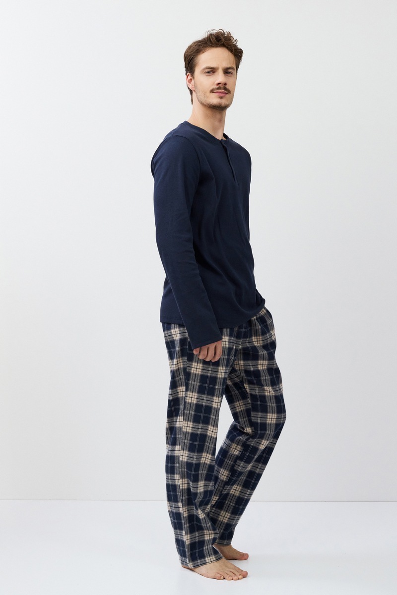 Пижама мужская со штанами LUCIE для вашего ночного комфорта. Пижама выполнена из приятной к телу ткани. Лонгслив с длинными рукавами, вырез горловины на планке с пуговицами. Штаны свободные, с эластичным поясом с завязкой и двумя боковыми карманами. Расслабьтесь с максимальным комфортом и стилем в пижаме LUCIE. Состав: верх 62% хлопок, 33% полиэстер, 5% эластан; низ 100% хлопок.