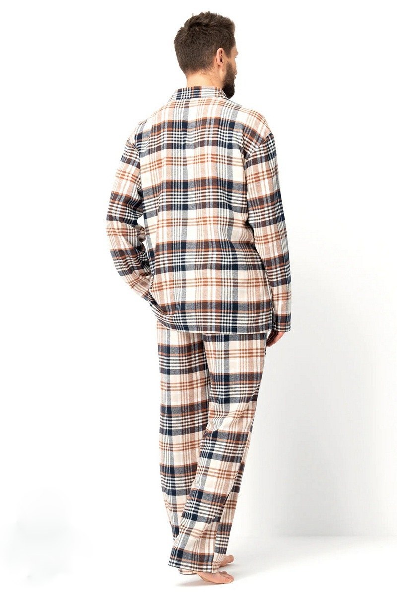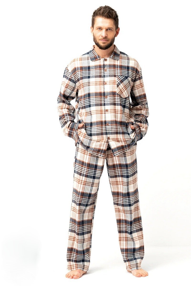 Классическая мужская фланелевая пижама. Теплая и удивительно приятная на ощупь фланелевая ткань согреет ваше тело холодными зимними вечерами. 100% высококачественные хлопковые волокна в сочетании с правильной строчкой и нитками обеспечивают прочное и долговечное использование. Классический крой, декоративный карман на груди. Классические брюки прямого кроя, на талии удобная мягкая резинка. Глубокие карманы по бокам. Вечно элегантная пижама! Мягкая, дающая свободу вашему телу, обеспечивает спокойный, комфортный сон.