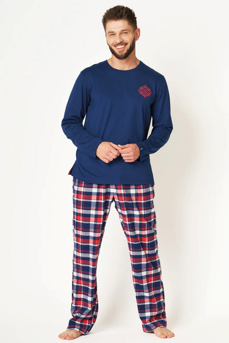 Теплая пижама, сочетающая хлопковую футболку с длинными рукавами и фланелевые брюки. Теплая и удивительно приятная на ощупь фланелевая ткань брюк согреет ваши ноги. Верх из мягкого хлопка, долговечен в использовании и сохраняет форму. Высококачественные 100% хлопковые волокна в сочетании с подходящей строчкой и нитками обеспечивают долговечность использования. Классические брюки прямого кроя с удобным мягким эластичным поясом. Ширинка на пуговицах, глубокие карманы по бокам.