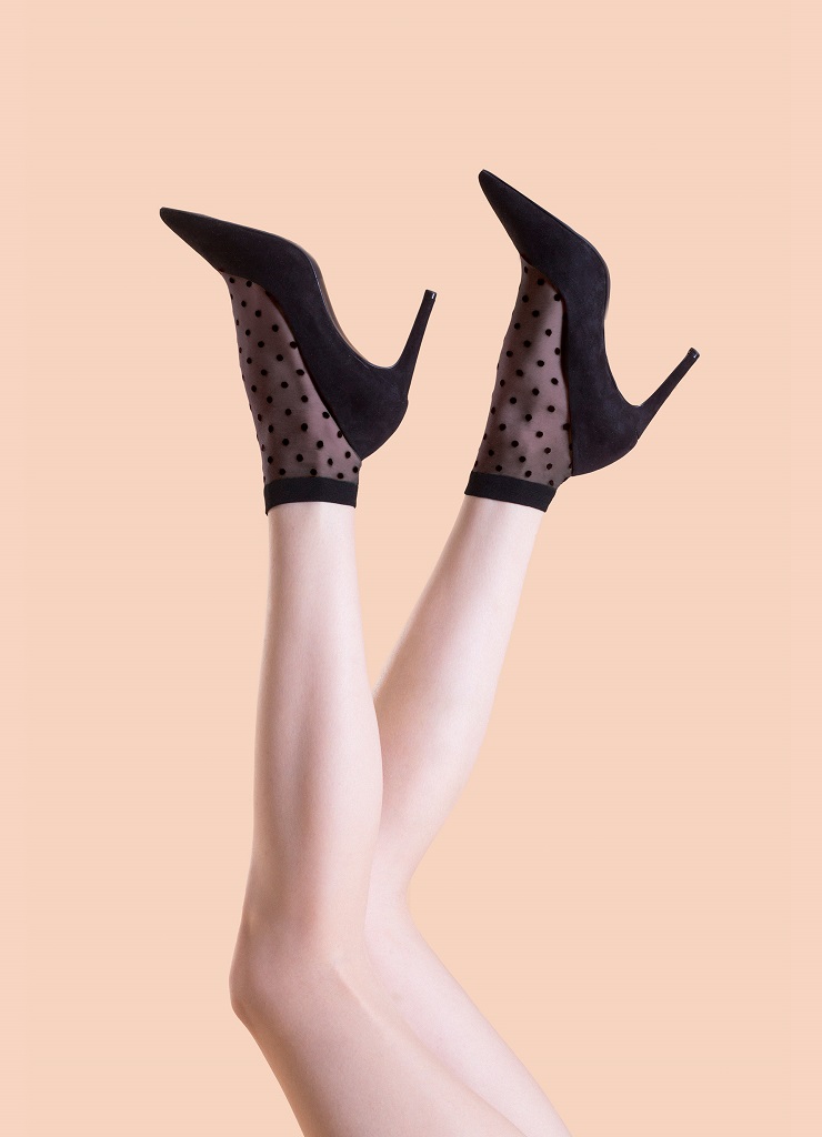 Носки 1035/G CUTE 20 den от европейского производителя Fiore. Прозрачные носки с рисунком в горошек и безнапорной лентой. Выполнены по технологии 3D из самых высокомарочных пряж для стойкости и прочности.