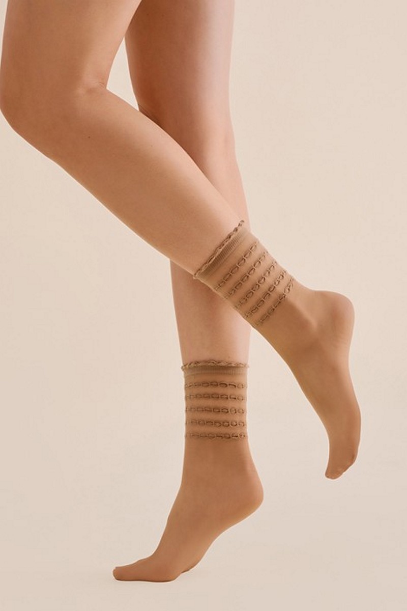 Женские носки Lora 20 DEN идеально соответствуют форме стопы. Отсутствие отмеченной пятки и носка позволяет сочетать тонкие носки с разной обувью. Невидимое усиление на носках делает носки более прочными и устойчивыми к затяжкам. Эластичная резинка не давит на ноги и позволяет удерживать носки с рисунком на нужном месте.