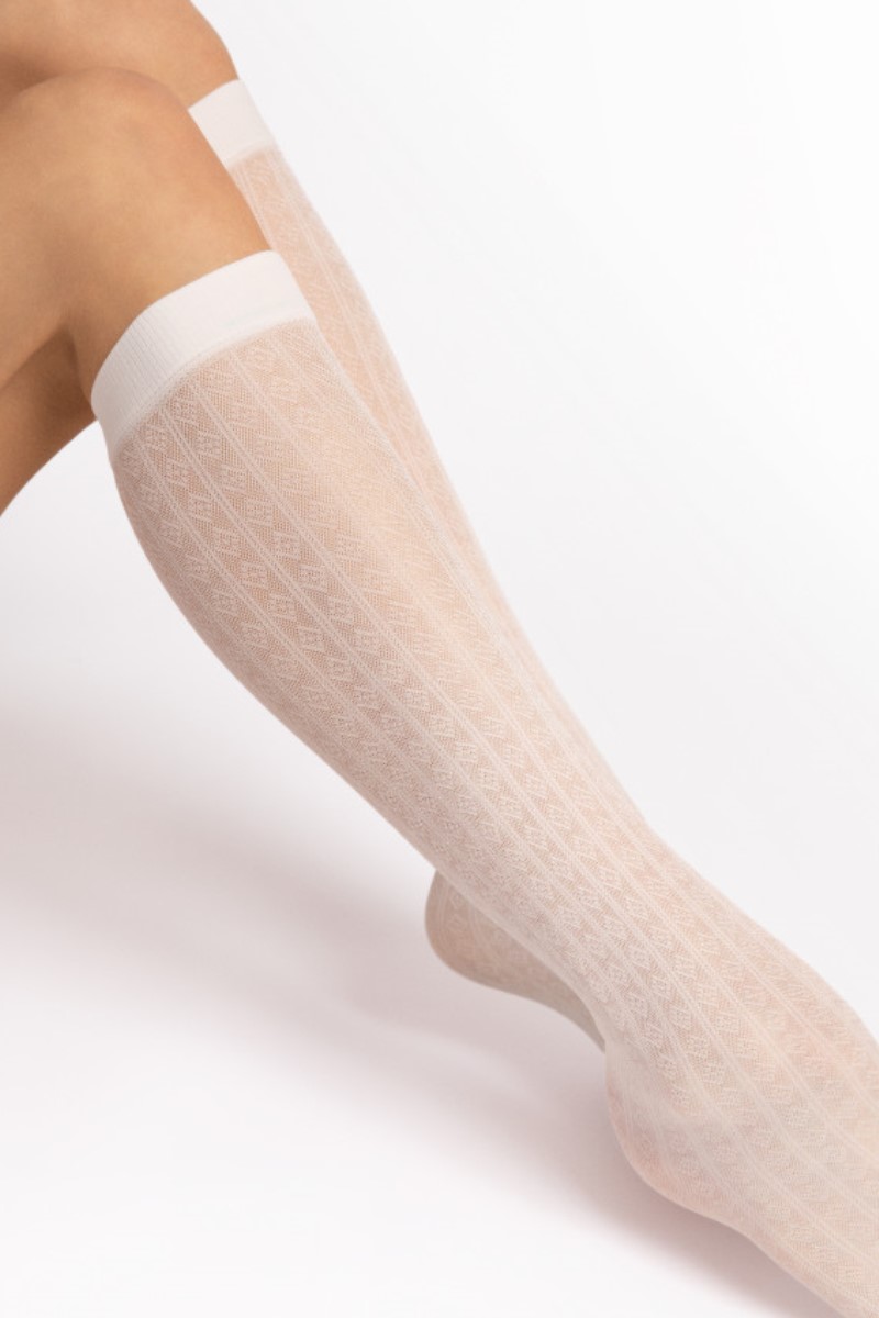 Тонкие узорчатые гольфы CRUSH 30 DEN. Широкий и удобный, гладкий съемник. Их можно сочетать во многих классических образах. Шелковистый матовый материал. Актуальный узор. Дополнительно усиленная часть пальца.