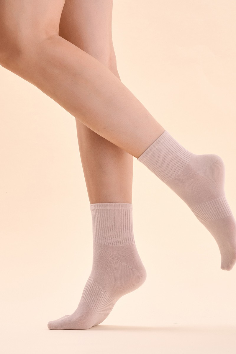 Однотонные женские хлопковые носки, доходящие до щиколотки, являются идеальным сочетанием минималистского стиля и функциональности. Гладкая часть сочетается с тонкими вертикальными полосами в середине стопы и от лодыжки вверх, что придает им современный шарм. Носки отделаны узким ребристым шнуром без застежки. Эти носки доступны в элегантной однотонной палитре, что делает их универсальным дополнением к любому повседневному гардеробу. Тонкая несжимающая резинка обеспечивает комфорт в течение всего дня, не ограничивая свободу передвижения, что имеет решающее значение для активных женщин. Благодаря уникальному трикотажу, состоящему из 95% хлопка и 5% спандекса, носки гарантируют непревзойденную мягкость, удобство использования и эластичность, идеально адаптируясь к форме стопы. Хлопок, являющийся основным компонентом материала, известен своей превосходной воздухопроницаемостью, что позволяет коже дышать и предотвращает чрезмерное потоотделение ног. Небольшое добавление эластана гарантирует, что носки устойчивы к растяжению и сохраняют свою форму даже после многих стирок. Невидимое усиление пятки и носка делает носки не только прочными, но и удобными, что увеличивает их срок службы и комфорт при ношении.