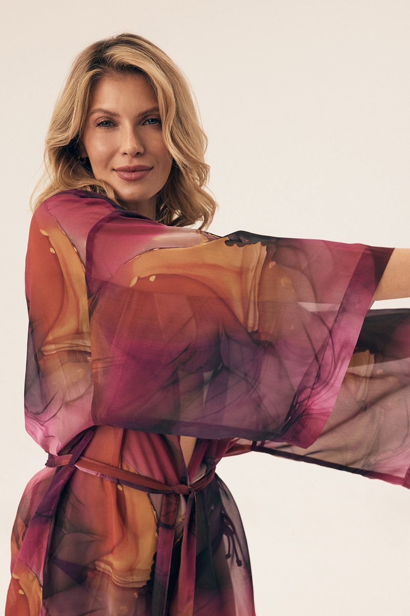 Короткий пляжный халат от европейского производителя Esotiq. Халатик с поясом и рукавами 3/4. Легкий, быстросохнущий. Отличное дополнение к купальнику.