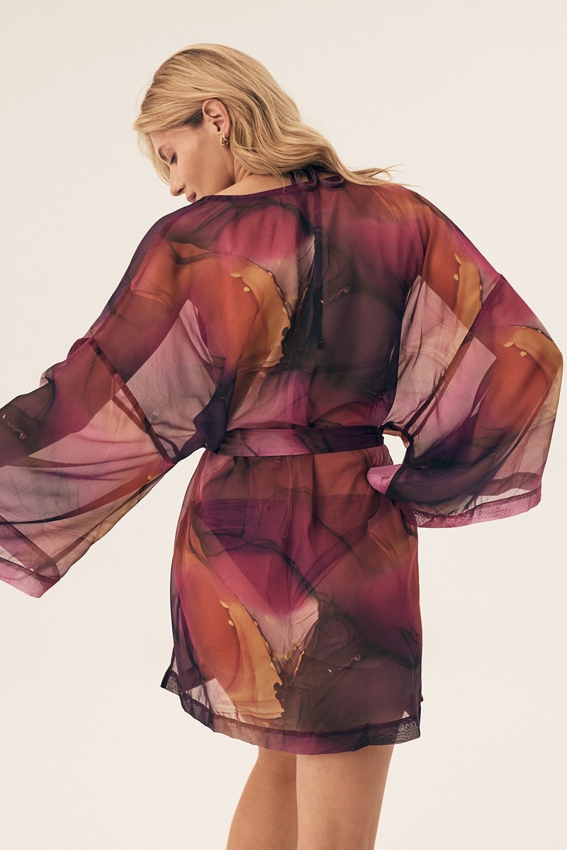 Короткий пляжный халат от европейского производителя Esotiq. Халатик с поясом и рукавами 3/4. Легкий, быстросохнущий. Отличное дополнение к купальнику.