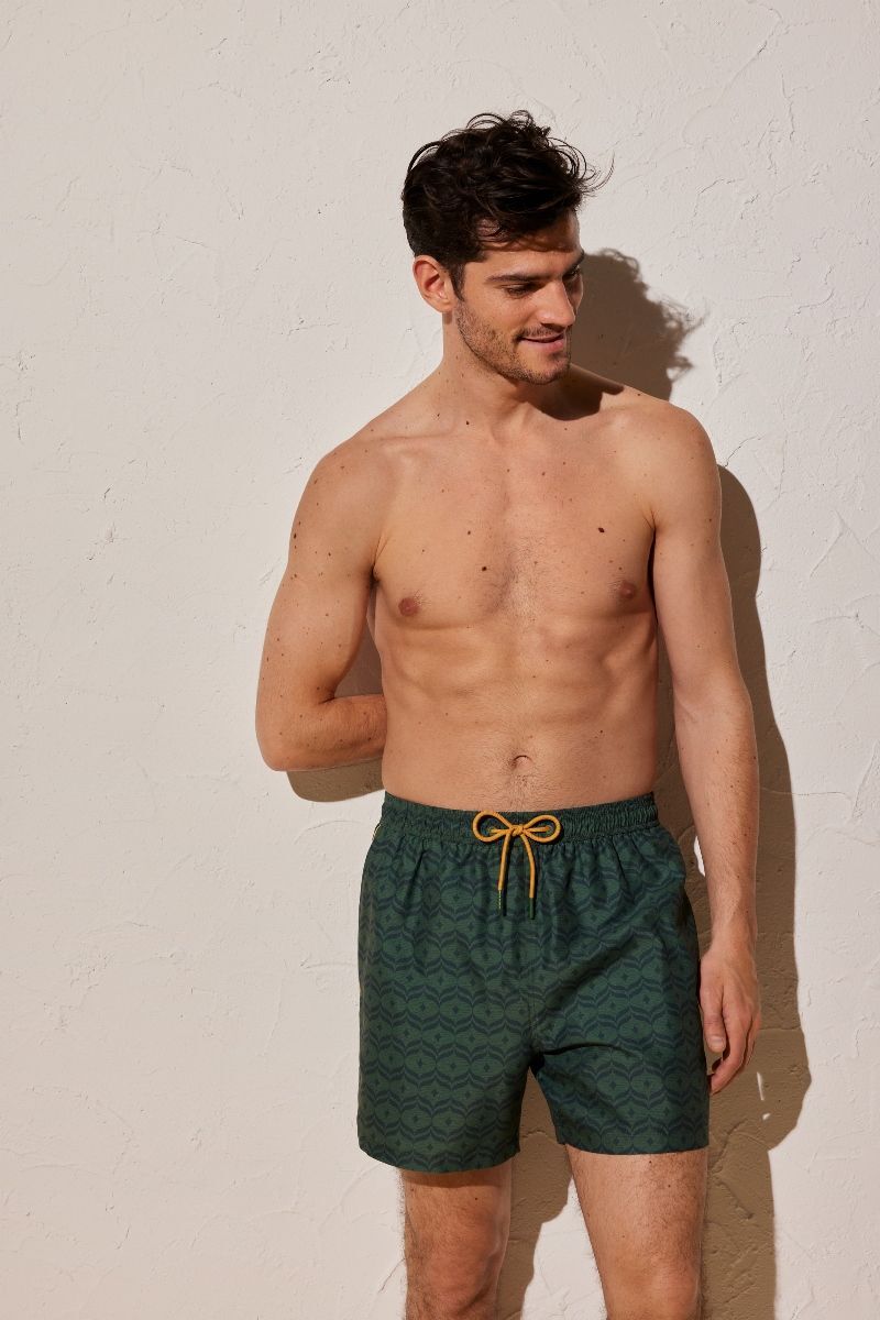 Мужские купальные шорты средней длины от Ysabel Mora. Изделие на завязках, с боковыми и задним карманами, выполнено из быстросохнущей ткани.