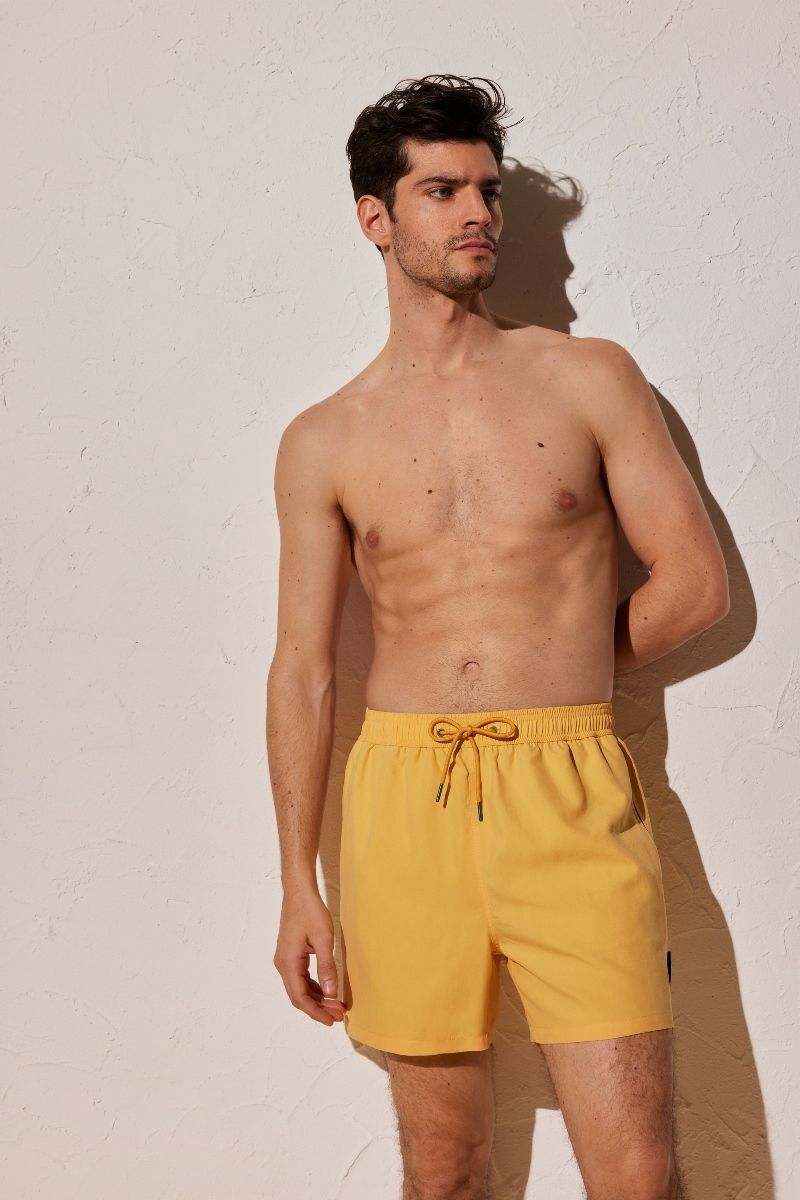 Мужские купальные шорты средней длины от Ysabel Mora. Изделие на завязках, с боковыми и задним карманами, выполнено из быстросохнущей ткани.
