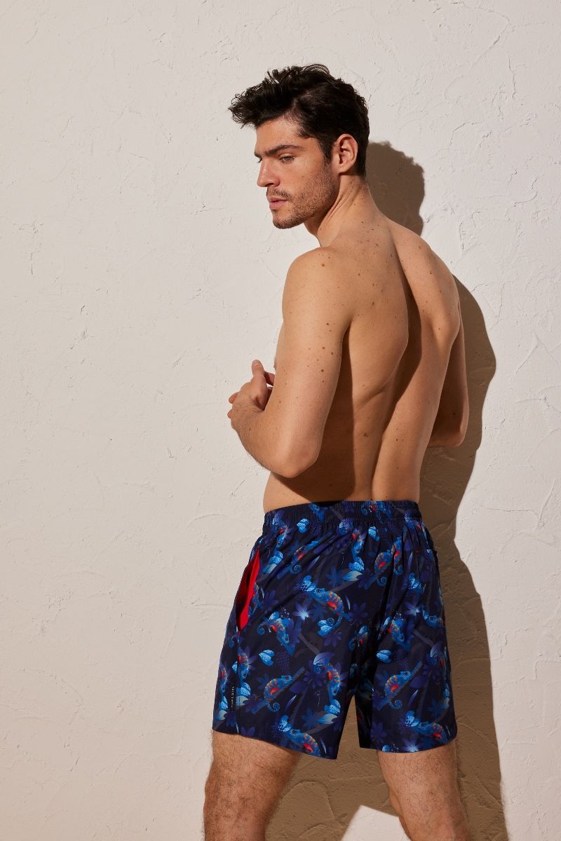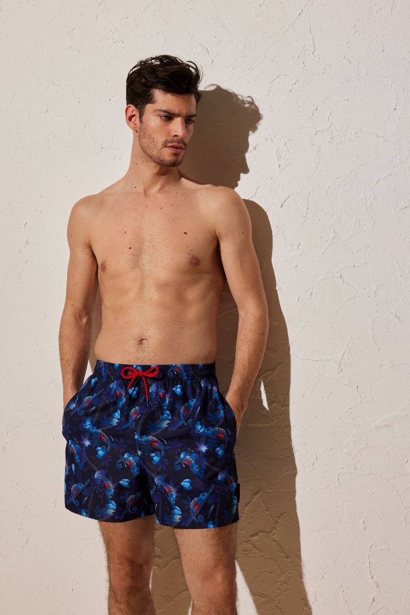 Мужские купальные шорты средней длины от Ysabel Mora. Изделие на завязках, с боковыми и задним карманами, выполнено из облегченной быстросохнущей ткани.