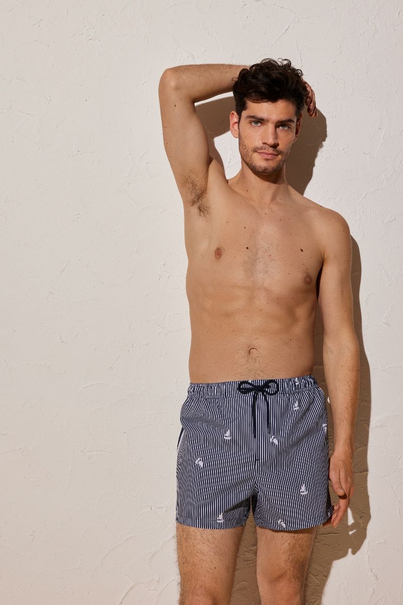 Мужские короткие купальные шорты от Ysabel Mora. Изделие на завязках, с боковыми и задним карманами, выполнено из быстросохнущей ткани.