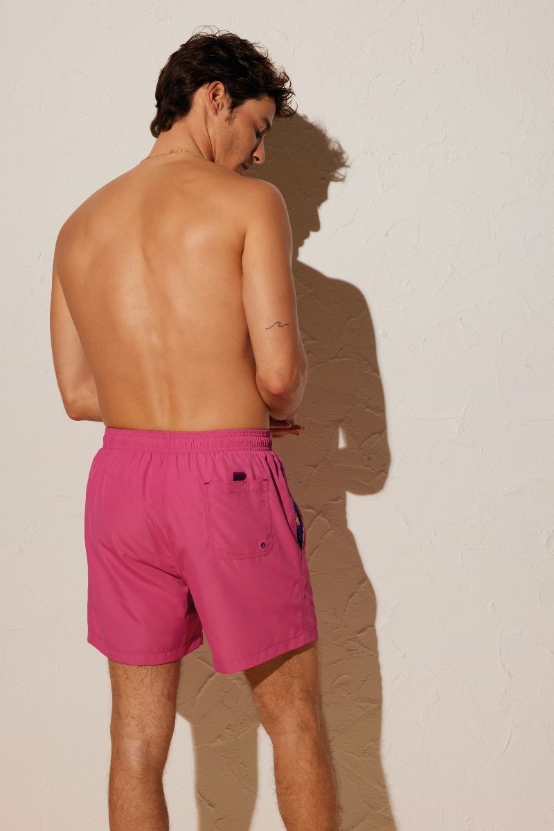 Мужские купальные шорты средней длины от Ysabel Mora. Изделие на завязках, с боковыми и задним карманами, выполнено из облегченной быстросохнущей ткани.