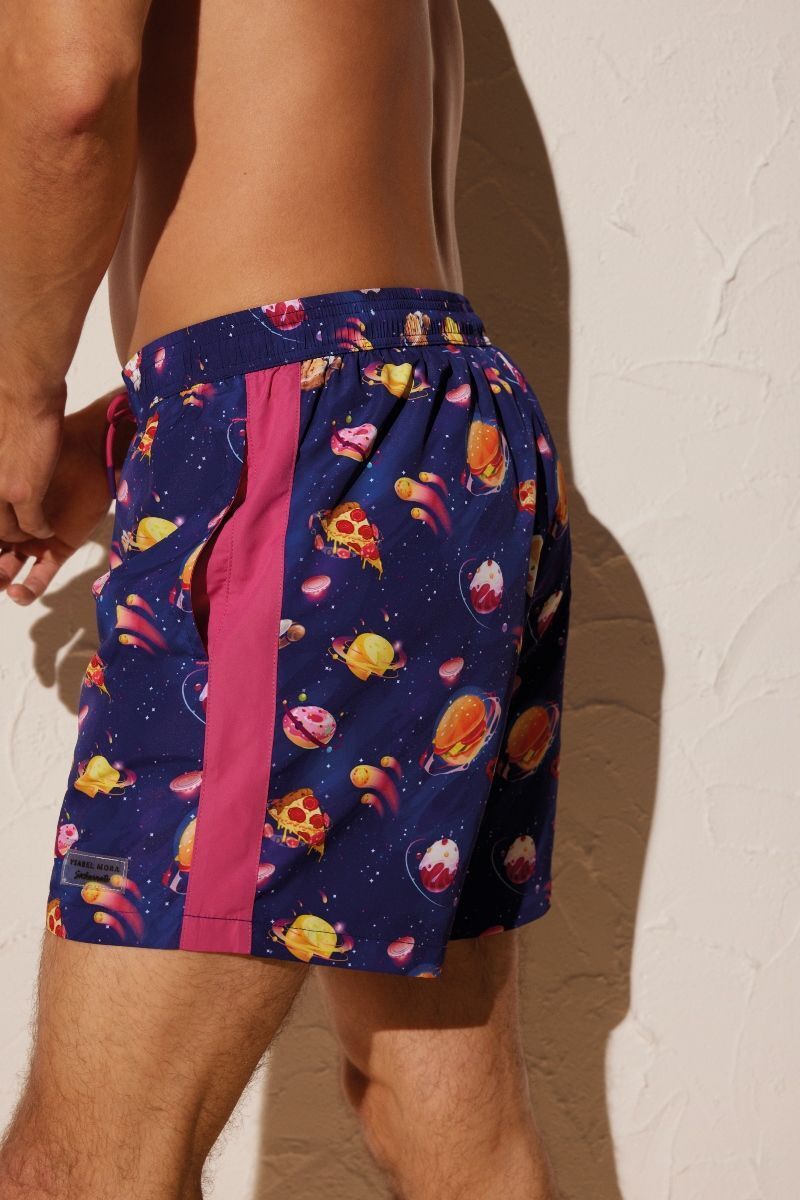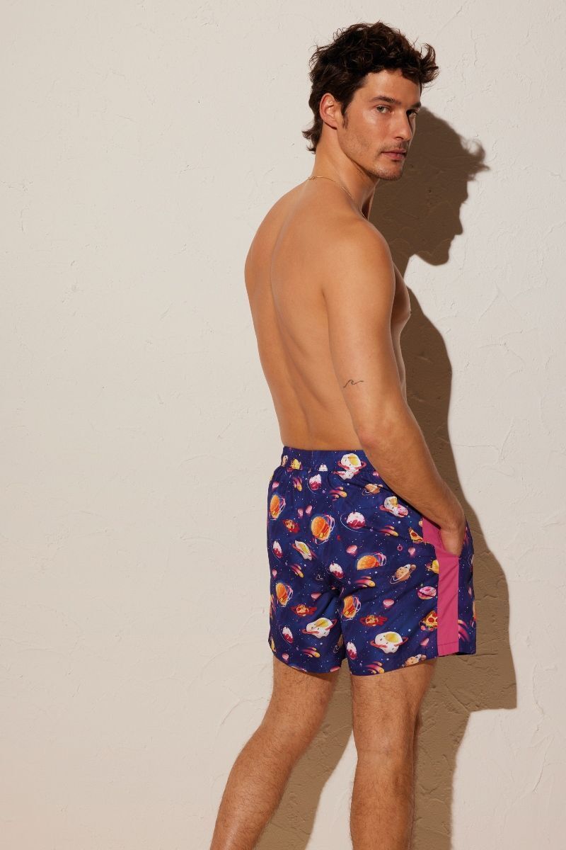 Мужские купальные шорты средней длины от Ysabel Mora. Изделие на завязках, с боковыми и задним карманами, выполнено из облегченной быстросохнущей ткани.