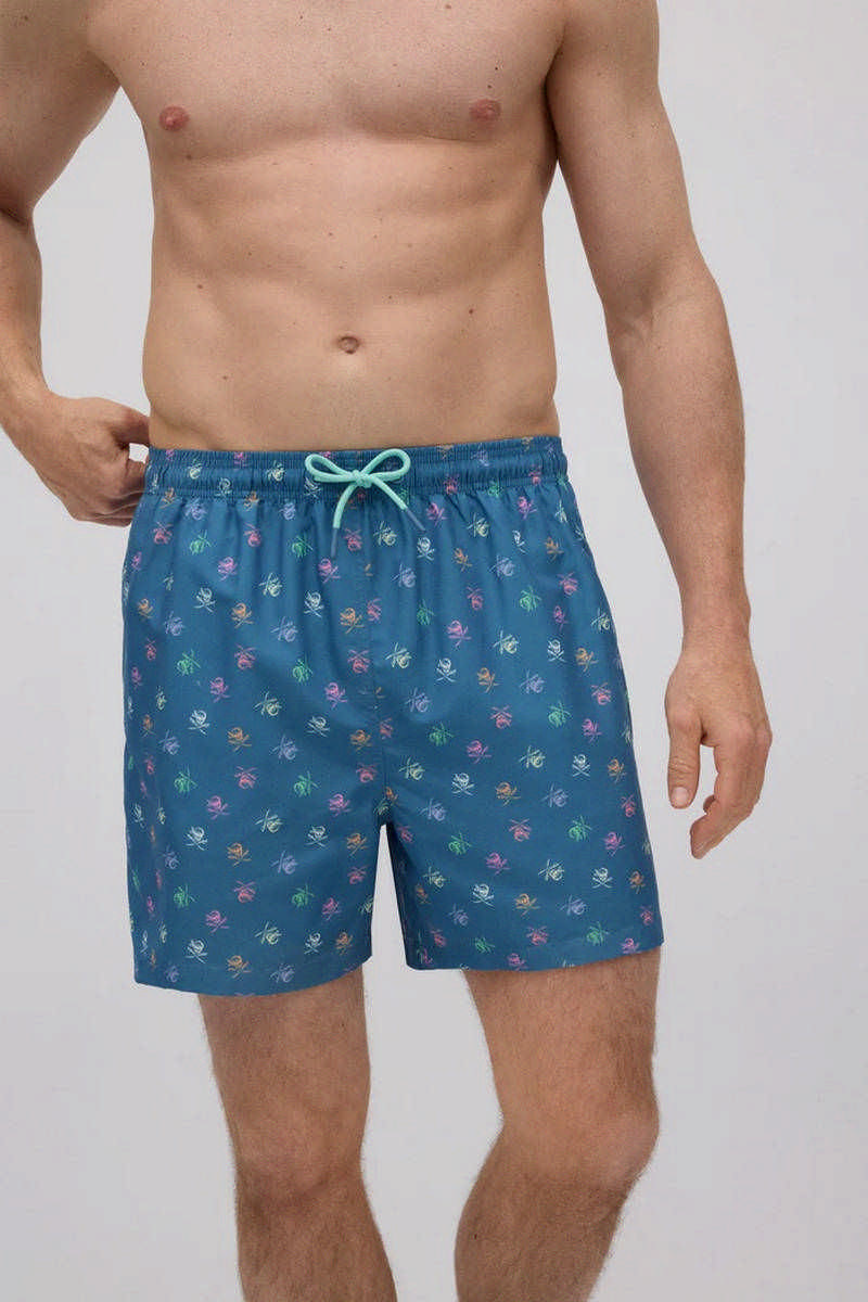 Мужские купальные шорты средней длины от Ysabel Mora. Пояс со шнурком, с боковыми и задним карманами. Выполнены из быстросохнущей ткани.