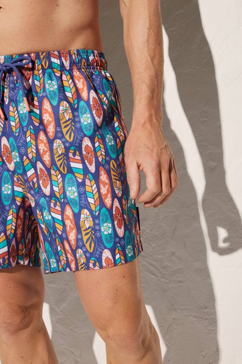 Мужские купальные шорты средней длины от Ysabel Mora. Пояс со шнурком, с боковыми и задним карманами. Выполнены из быстросохнущей ткани.