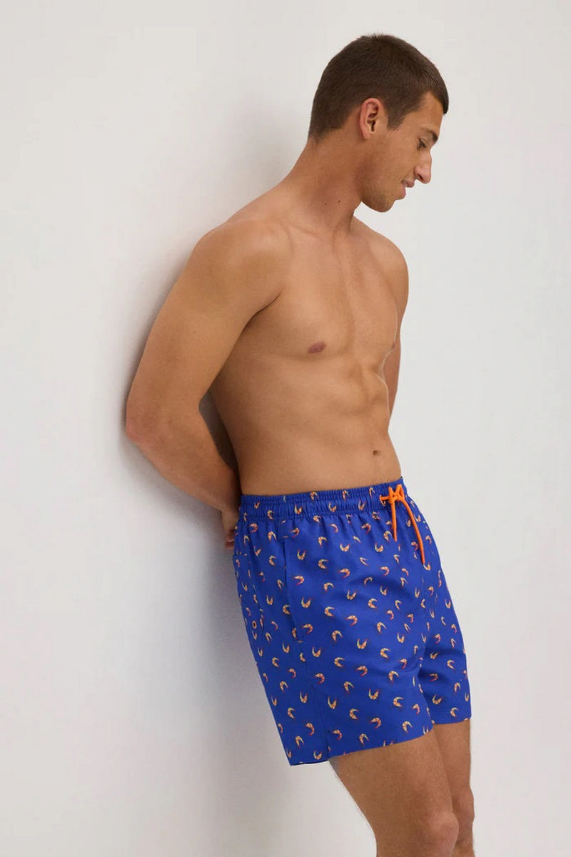 Мужские купальные шорты средней длины от Ysabel Mora из серии MINI ME. Пояс со шнурком, с боковыми и задним карманами. Выполнены из быстросохнущей ткани.
