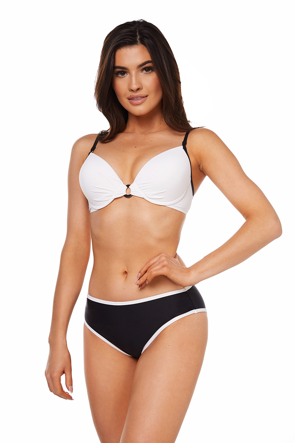 Раздельный купальник A.8070 с чашками на каркасах, с пуш-ап вкладышами. На спине нерегулируемая застежка, бретели регулируются по длине и отстегиваются. Плавки с средней посадкой.