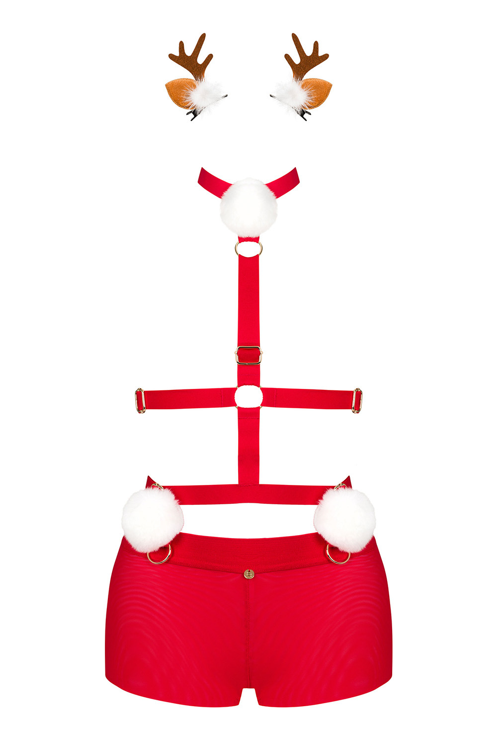 Игровой новогодний костюм Ms Reindy из трех предметов. Яркий цвет и необычный образ. В комплекте: шортики, портупея, рожки.