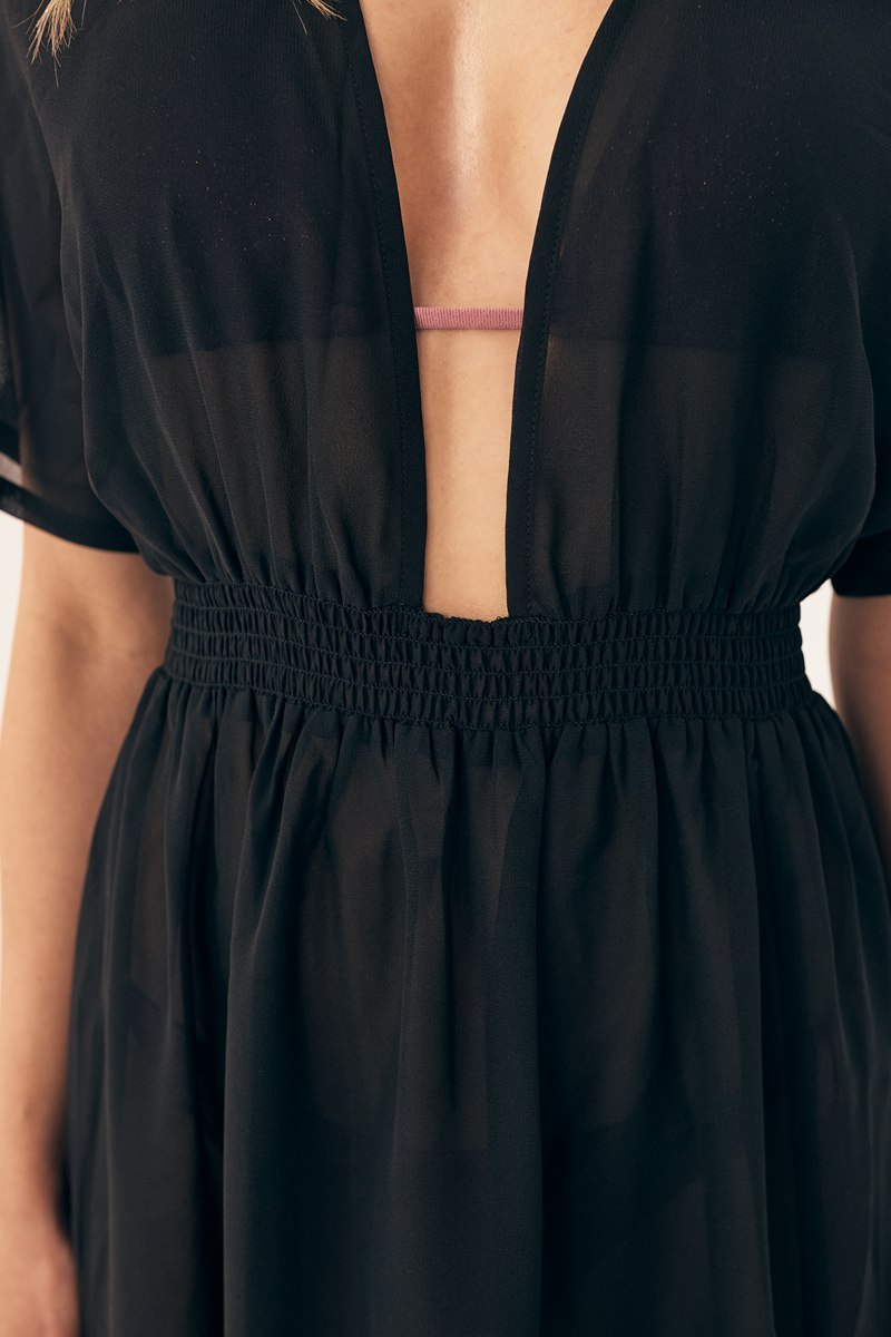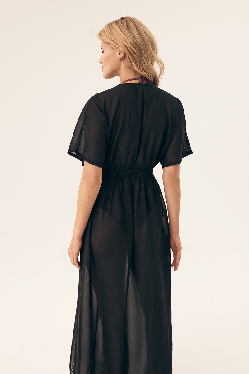 Длинная пляжная туника от европейского производителя Esotiq. Туника с коротким рукавом и V-образным вырезом. Легкая, быстросохнущая. Отличное дополнение к купальнику.