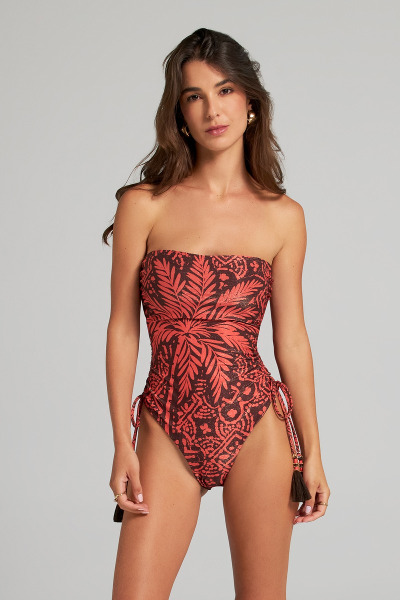 Двусторонний сплошной купальник с металлической нитью от колумбийского бренда Cosita Linda. Модель выполнена из высококачественной ткани с эксклюзивными дизайнерскими аксессуарами ручной работы. Очаровательные кисточки-стяжки по бокам, отстегивающиеся бретели, чашка на тонком несъемном поролоне. Бренд уделяет большое внимание защите природы, поэтому все свои изделия производит из современной переработанной эко ткани по технологии Less Water.