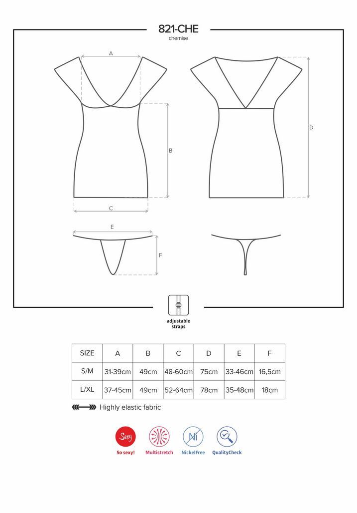 Воздушная сорочка 821, от европейского производителя Obsessive. Нежный кружевной верх и плотно облегающий сетчатый низ - невероятно чувственное сочетание! Ряд маленьких цветов на глубоком вырезе, рукавах и спине. Милый бантик ниже бюста. Подол органично обрамлён кружевом. Стринги включены в комплект поставки. Мягкие и эластичные ткани.